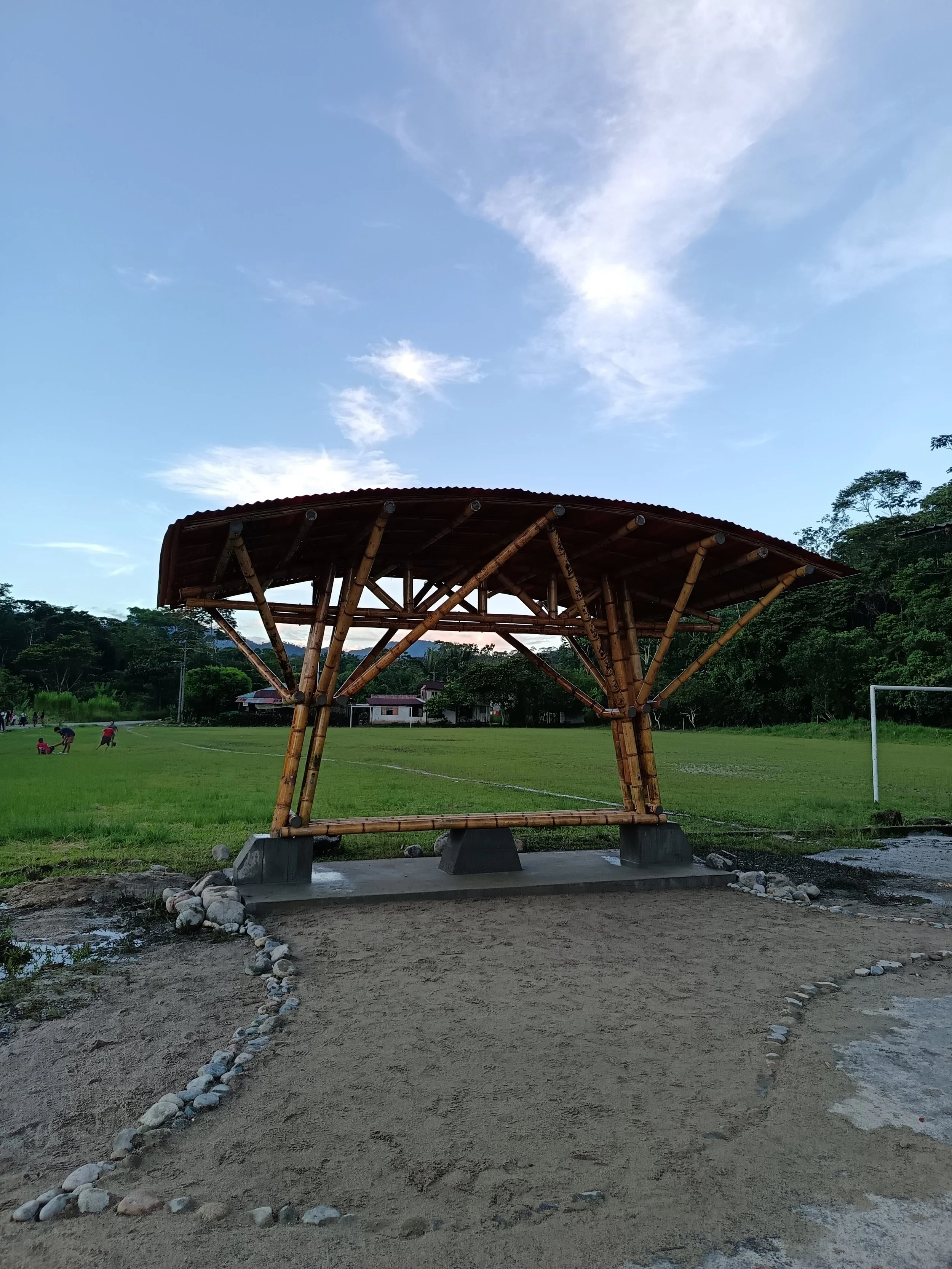 Gracias a la articulación entre la comunidad de Atacapi, la Fundación Ecosistemas en Acción y el Regeneration Field Institute (RFI), se hizo realidad un sueño local: la construcción de una parada de autobuses sostenible hecha con bambú y materiales locales. Esta infraestructura mejora la conectividad de las familias de Atacapi y es resultado de un proceso participativo, donde estudiantes voluntarios, técnicos, arquitectos y comuneros trabajaron hombro a hombro combinando saberes técnicos y conocimientos ancestrales.