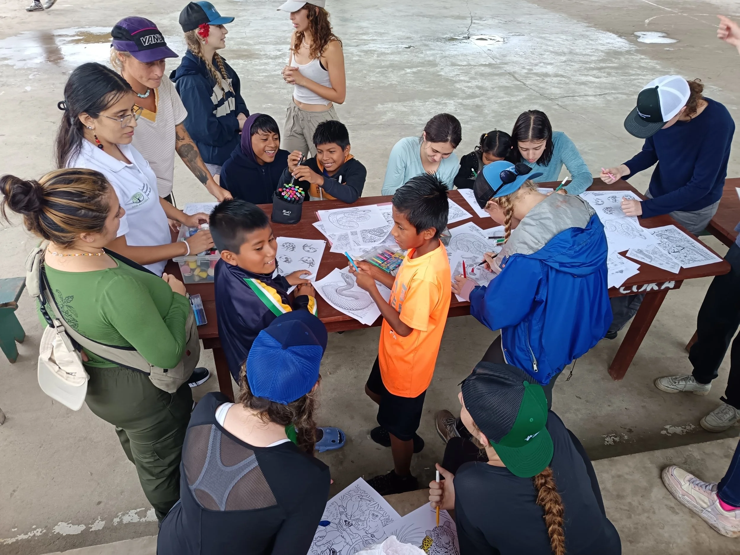 Durante la estadía del RFI, se vivieron jornadas de aprendizaje y conexión con la comunidad. Se visitaron chakras manejadas por mujeres, se recorrió la Ruta del Café y el Chocolate de Purik Rumi, se plantaron especies nativas en la ribera del río, y se compartieron actividades con niñas y niños de la comunidad.